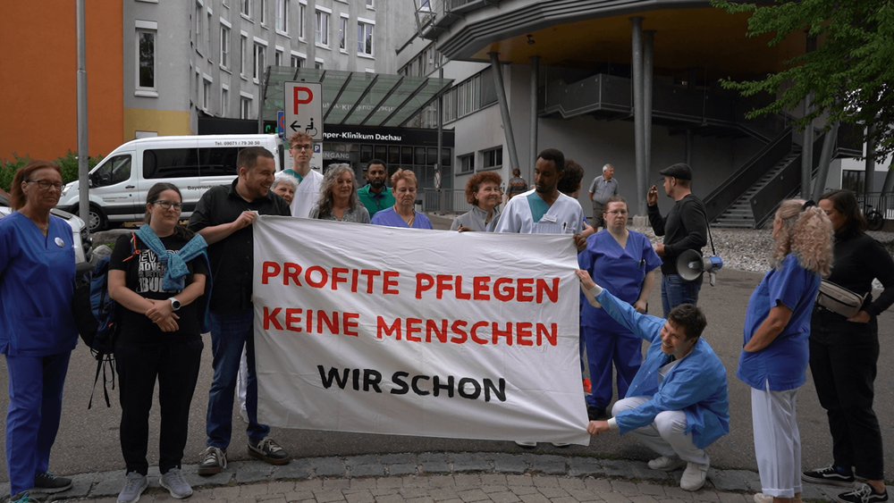 Protestaktion vor dem Helios Klinikum in Dachau.