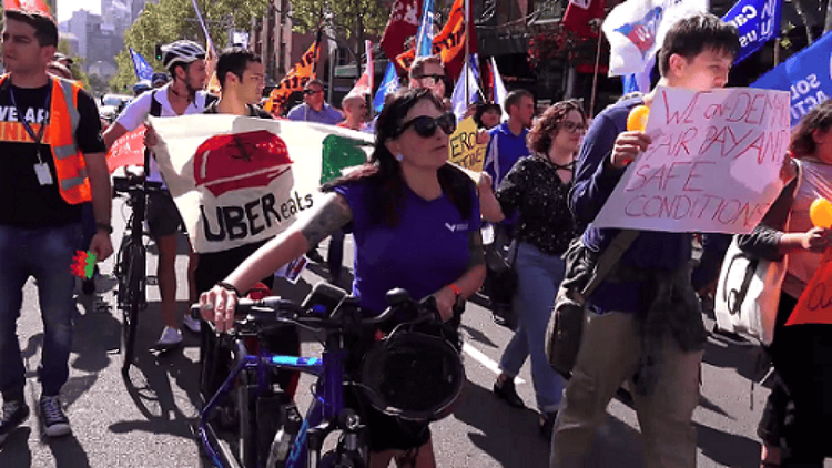 September 2018 - UberEats Kuriere haben überall in den UK wilde Streiks organisiert, nachdem das Unternehmen angekündigt hatte, den Lohn der Fahrer_innen um 40% zusenken, von 4,26 Pfund auf 2,62 Pfund pro Zustellung.