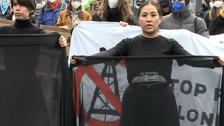 Protestveranstaltung gegen Repsol vor der spanischen Botschaft in Berlin, 4. Februar 2022