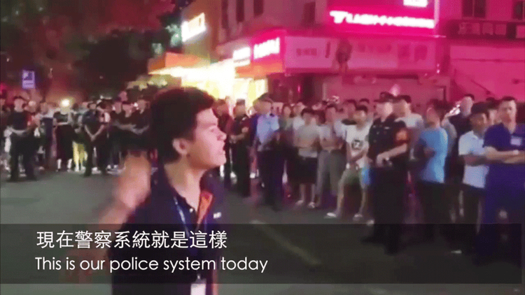 Rede eines Jasic Arbeiters am 26. Juli 2018 vor der Polizeistation in Shenzen.
