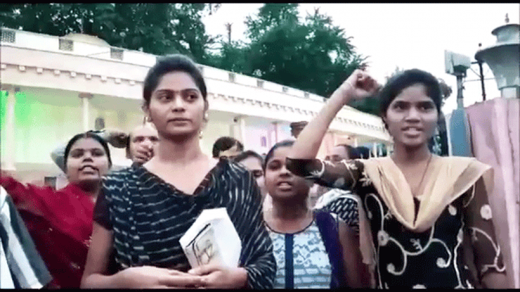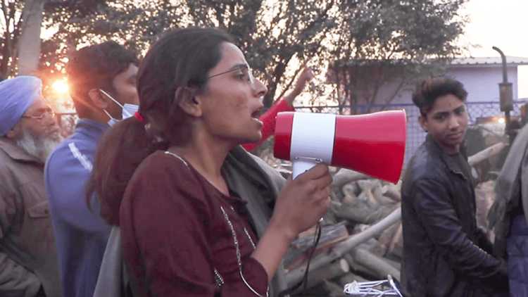 Proteste um ausstehende Löhne in Haryana/Indien, während der großen Bauernproteste.