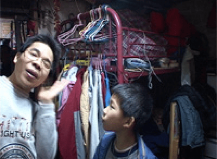 December 20, 2005 Hong Kong - visit to a cage home. Working poor, unemployed people and their families live here. A 'home' is the upper or lower part of a story bed. Social worker Sze Lai Shang of the 'Society for Community Organization' in Hong Kong says that a total of 150,000 people in Hong Kong live in inadequate circumstances. She also states that conditions are going to worsen for Hong Kong's poor when the city opens up its markets.